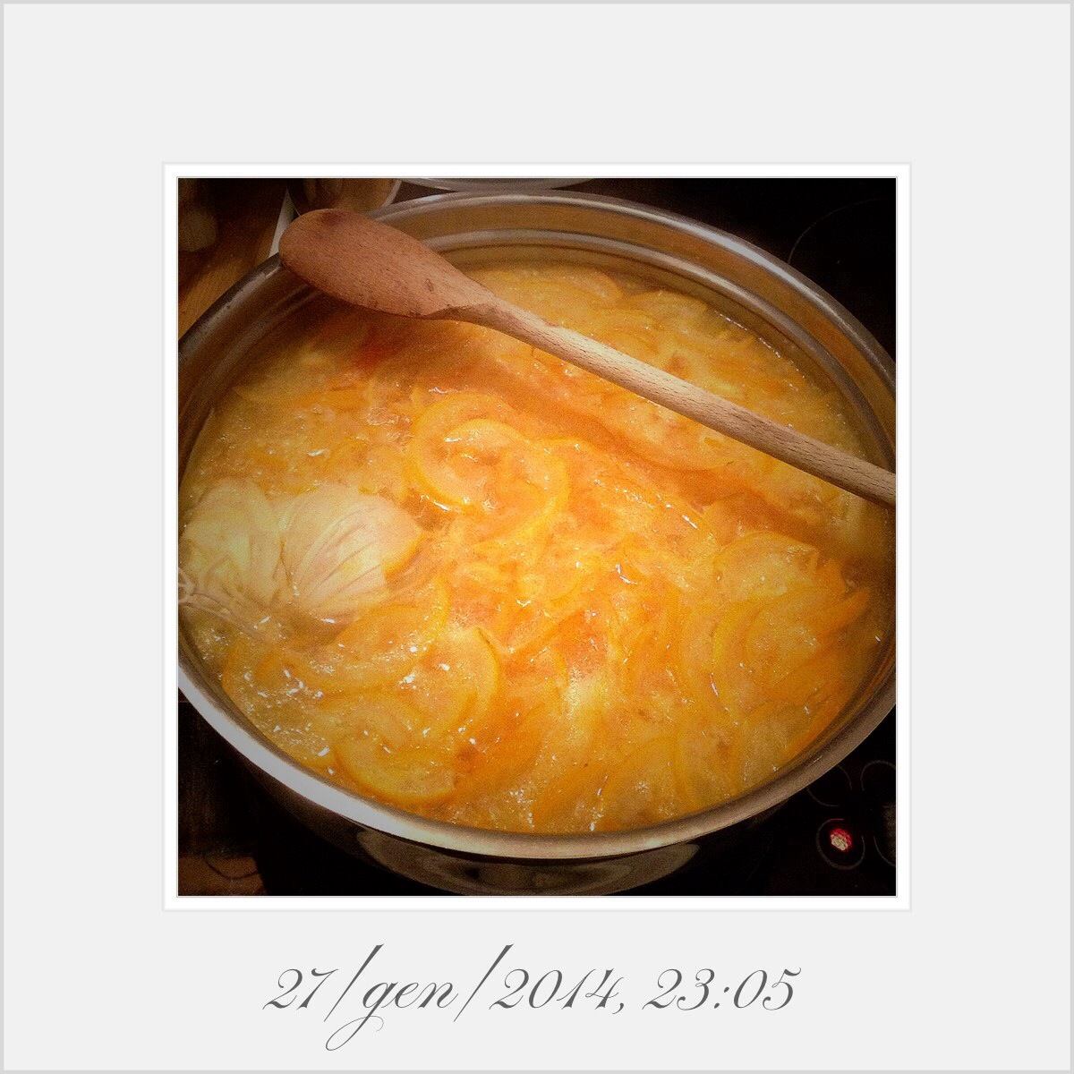 Portate il tutto senza fretta a bollore, riducete la fiamma e lasciate sobbollire per 45 minuti, un’ora, tanto da rendere morbide le scorze e ridurre quasi alla metà il contenuto.